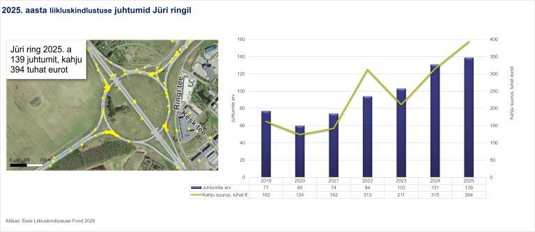 aastal registreeriti Eestis kokku 32 601 liikluskindlustuse juhtumit, mida on 3% vähem kui aasta varem. Hoolimata üldisest langustrendist püstitasid suve- ja sügiskuud uusi negatiivseid rekordeid ning keskmiselt toimus Eesti teedel 89 liiklusõnnetust päevas. Liiklusõnnetuste kogukahju ulatus eelmisel aastal 77 miljoni euroni. Kuigi aasta algust ja lõppu iseloomustas tänu pehmetele ilmaoludele tavapärasest madalam õnnetuste arv, siis suve teine pool tõi kaasa ebatavaliselt kõrge liiklusaktiivsuse ja kahjujuhtumite...
