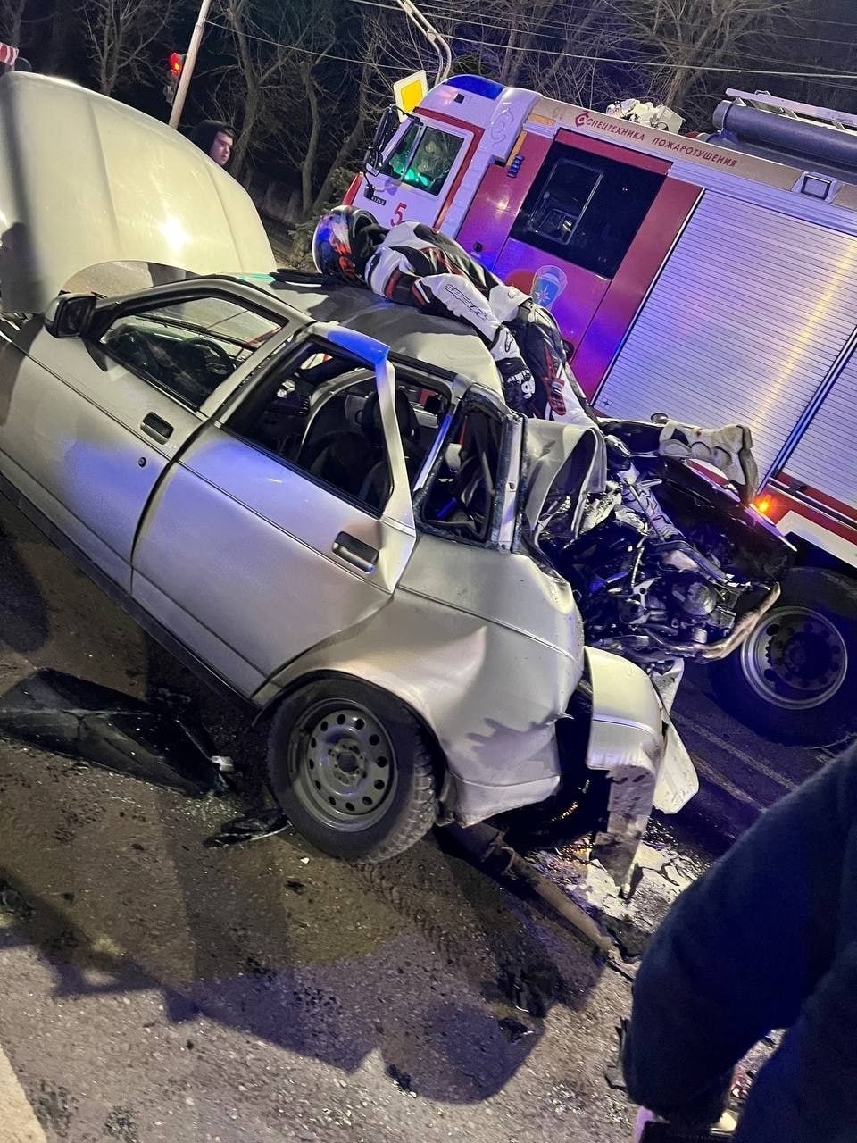 Pühapäeva hilisõhtul toimus okupeeritud Luganskis raske liiklusõnnetus, kui kaks mootorratturit kihutasid tühjal tänaval. Neist üks sõitis suurel kiirusel tagant otsa Ladale, mis seisis foori taga ja ootas lubavat tuld.