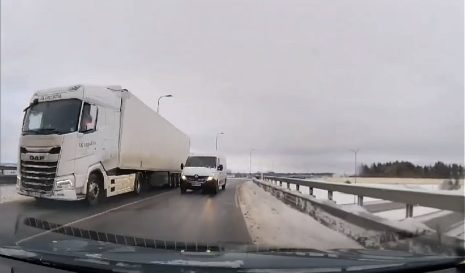 Saba tilbendas kastikal nii kaua järgi, kuni lõpuks tõmbas ka vedava masina kaasa. Õnneks päädis asi vaid juhitavuse kaotamisega ning mõlemad jäid teele ning keegi teine ei saanud samuti viga.