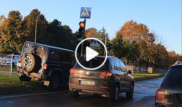 Jeepi juht arvas ilmselt, et küllap lipsab läbi tema ees sõitnud Volkswagen ja kindlasti ka tema. Nii tuligi avarii vältimiseks veel viimasel hetkel võtta ette teekond muru peale.