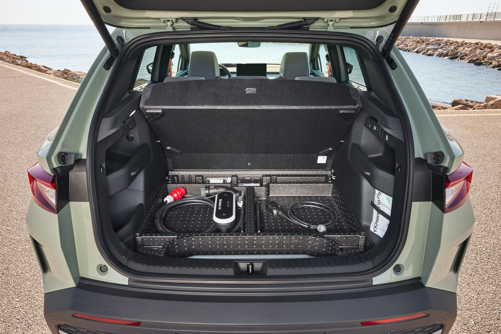 Mõõtmetelt on Elroq umbes 15 cm lühem kui Enyaq, kuid tänu sama pikale teljevahele on salong endiselt sama avar. Seega pole tegu mingi miniatuurse elektrijubinaga, vaid korraliku perelinnamaasturiga, mille pagasiruum mahutab kõik suusad, lapsevankrid ja isegi turult ostetud kurgid. Tagumised istmed alla ja sul on ruumi nii palju, et võiksid seal keskmise suurusega poniga ringi traavida.