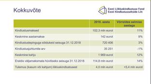 Liikluskindlustuse fondi juhi Mart Jesse sõnul oli möödunud aasta nii heas kui halvas mõttes rekordiline, sest läbi aegade kõige kõrgema taseme saavutasid nii kindlustatud sõidukite arv, kindlustusmaksete kogumaht, keskmine kindlustusmakse, kuid kahjuks ka keskmine kahjusumma. "Positiivsena saab esile tuua kindlustusjuhtumite arvu üheprotsendilist vähenemist, mis oli tingitud ennekõike parklakahjude vähenemisest," ütles Jesse.