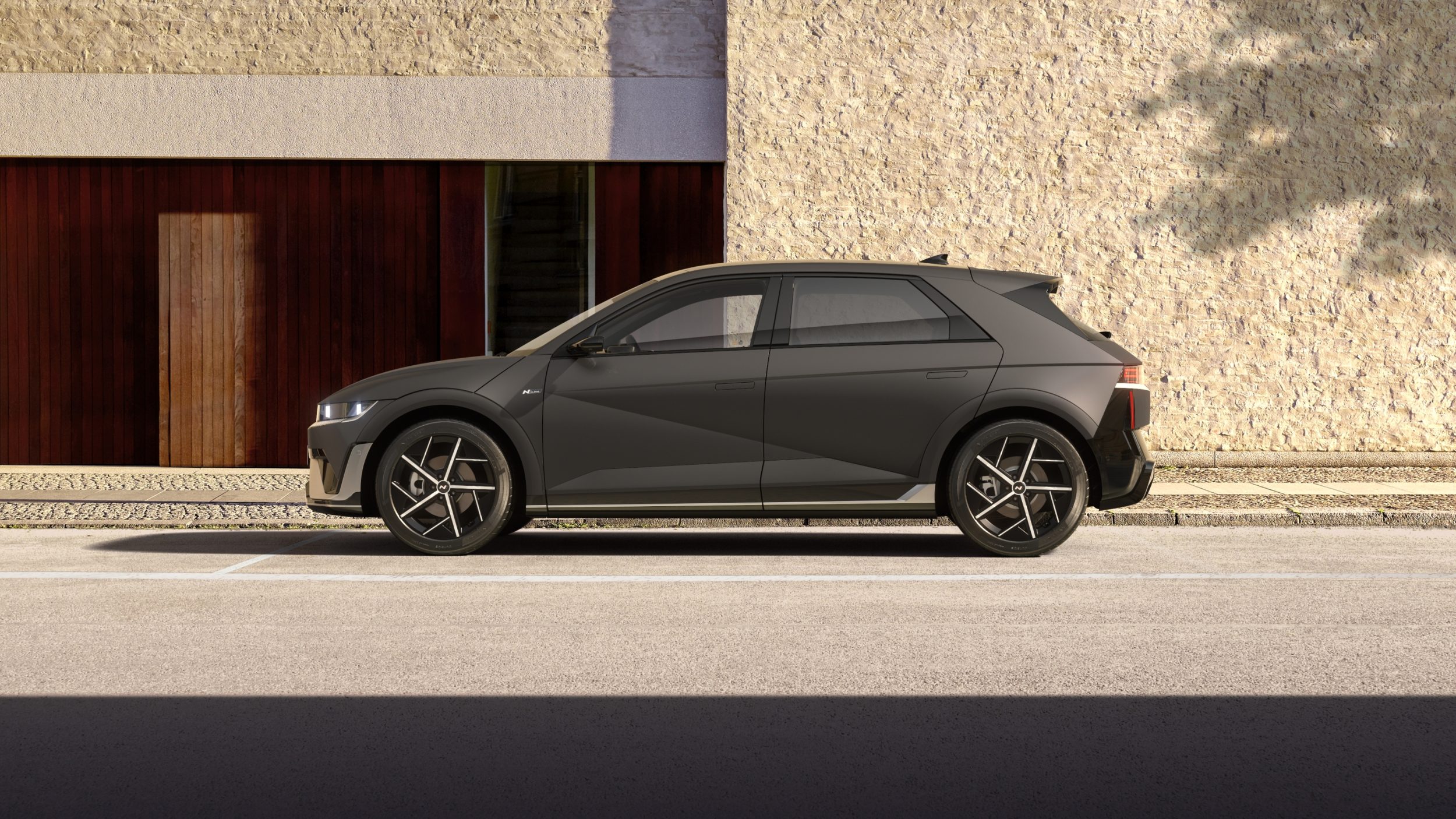 Rattad nihutati kerest nii välja nagu oleks Ioniq 5 valmis mistahes hetkel sprindiks stardipauku kuulma. Teljevahe on 3 meetrit. Kolm. See on rohkem kui mõnel kupeel või limusiinil ja annab autole külgvaates sportlase oleku. Lisaks veel Z-kujuline uksemuster, mis jookseb kerepindadel nagu välgunool. Isegi paigal seistes, näeb auto välja, nagu see oleks juba poolel kiirusel. Ukselingid disainiti nagu ninjatehnikas kadunud objektid, mis ilmuvad ainult siis, kui nad sind vääriliseks peavad. Tõsi, nende tunnetus käes on pigem nagu krabaks porgandit, aga hei, ilu nõuab ohvreid.