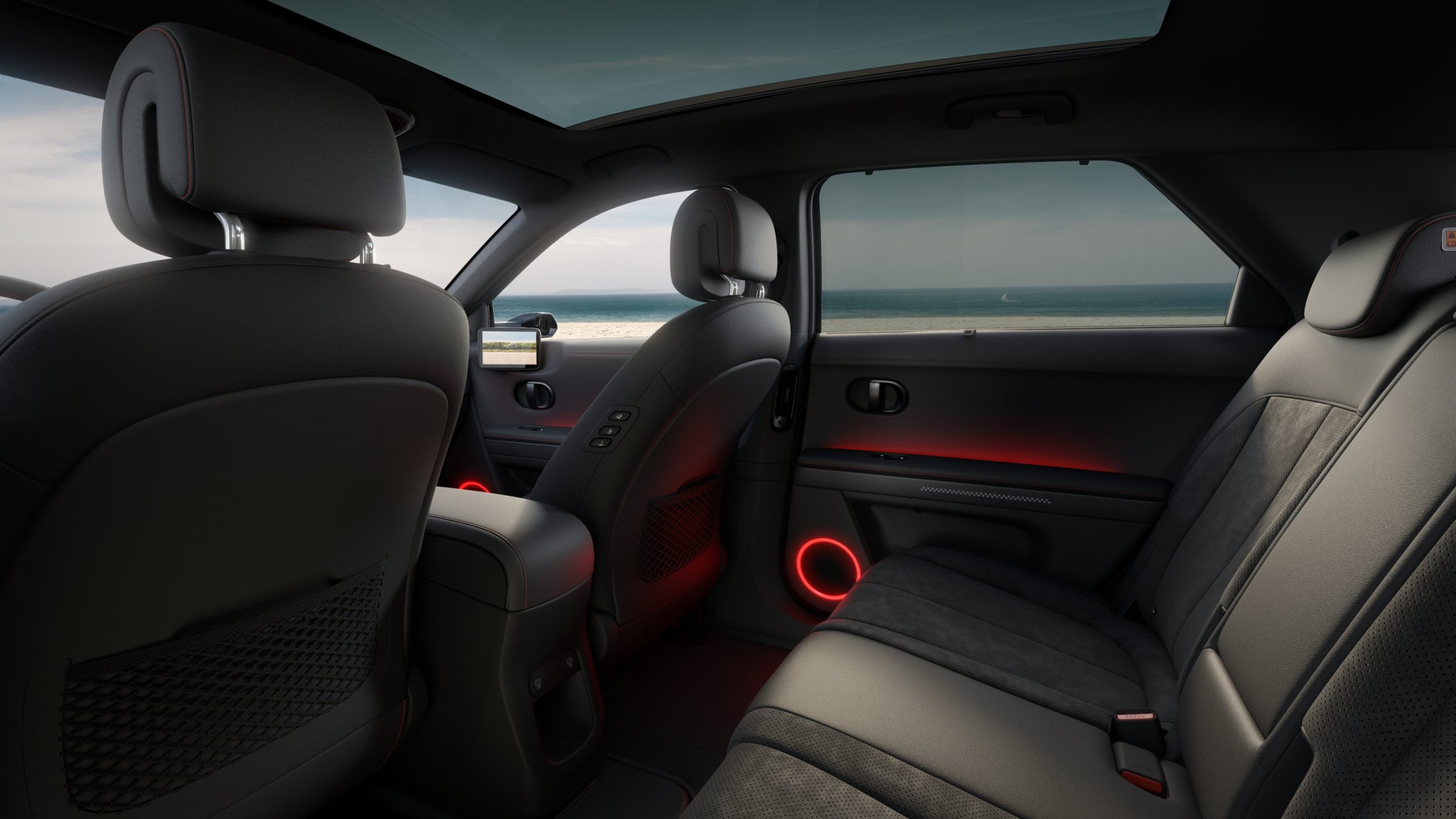 Sisenedes Ioniq 5 salongi, tekib tunne, et oled sattunud mitte autosse, vaid avangardse sisearhitekti kujundatud äriklassi lounge’i. Tänu sellele, et Ioniq 5-l puudub sisepõlemismootoriga kaasaskäiv arhailine kola, on salong justkui vabanenud kitsendustest. Põrand sai tasane nagu hokiväljak, teljevahe ulatub kolme meetrini, mille tulemuseks on jalaruum, millest unistavad isegi äriklassi lennukid. 1.95 pikk inimene võib taga istuda nii, et põlved ei puutu esimese istme vastu.