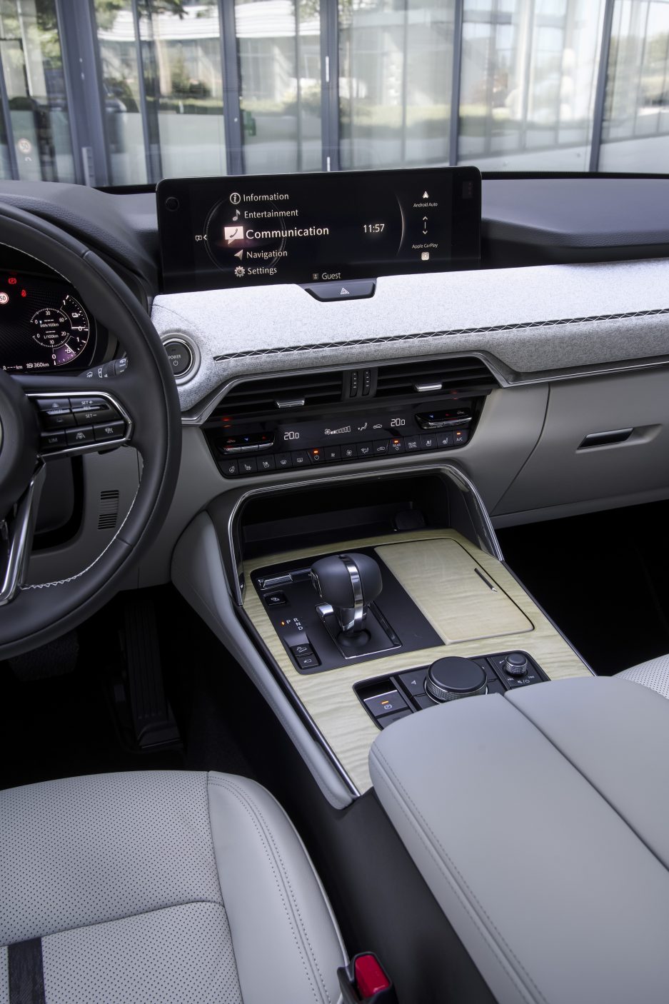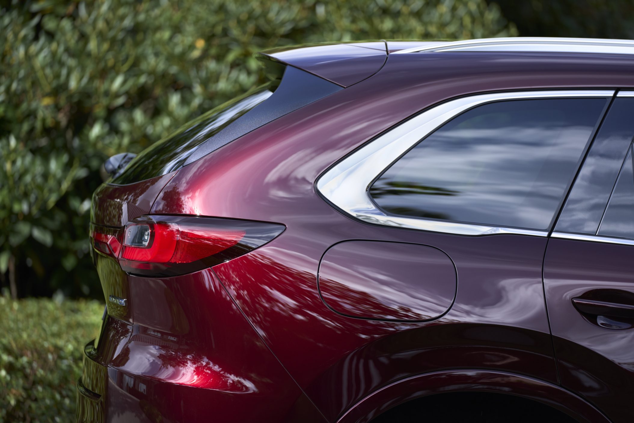 Aga astu samm küljele ning pilt muutub. CX-80 on hiiglaslik. Teljevahe on pikem kui Volvo XC90-l. Pikem kui BMW X7-l. Tegelikult on see nii pikk, et kui pargid auto ühte linnaotsa, jääb tagaluuk teise linnaossa. Kõik see lisapikkus annab CX-80-le sirge, väärika küljeprofiili, millel puuduvad tarbetud kortsud ja kühmud – justkui oleks keegi eriti entusiastlikult triikrauda kasutanud.