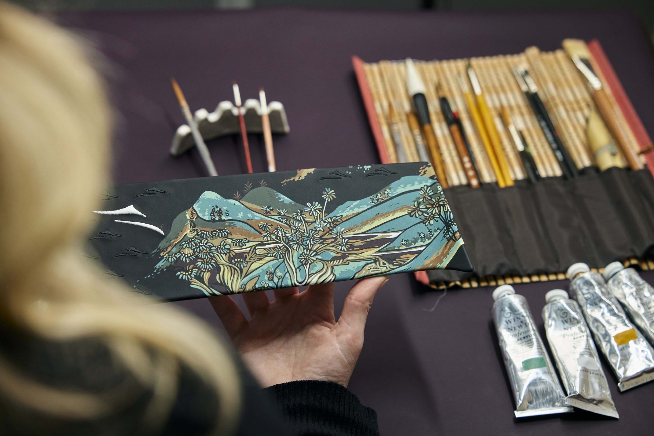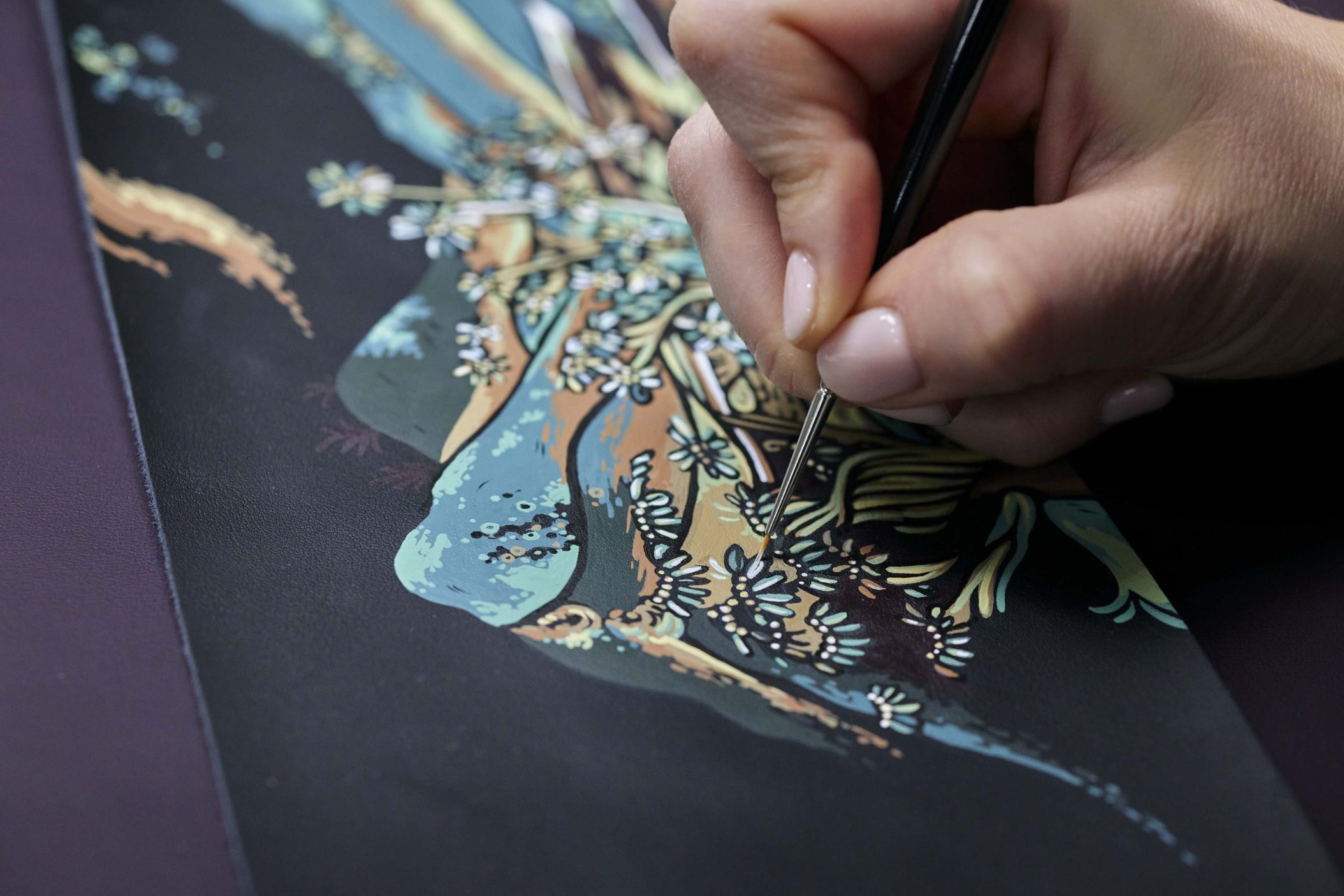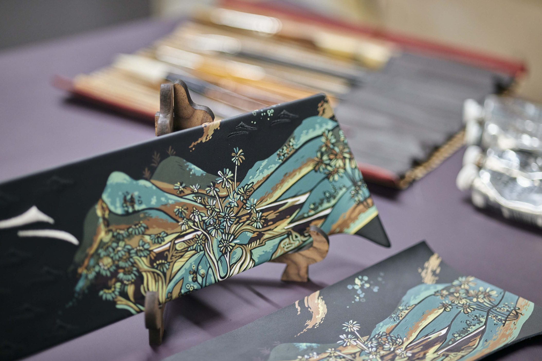 Phantom Extended saab endale käsitsi maalitud galeriipaneeli, mis meenutab lendavaid apsaras’e – budistlikke taevaseid olendeid. Ningye Purple karva kerevärv ja 192 langevat tähte laepaneelil räägivad omaette poeetilist lugu. Disainer Chloe Dowsett tõi motiivile elu andes mängu hiina puugravüüri tehnika, ainult et plokkide asemel kasutas ta peenikest pintsliharja ja maalis kihthaaval mustale nahale. Tulemus: sisekujundus, mis kõlab vaikselt, aga mõjuvalt.