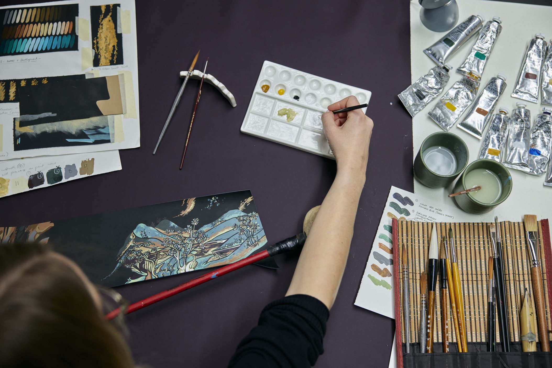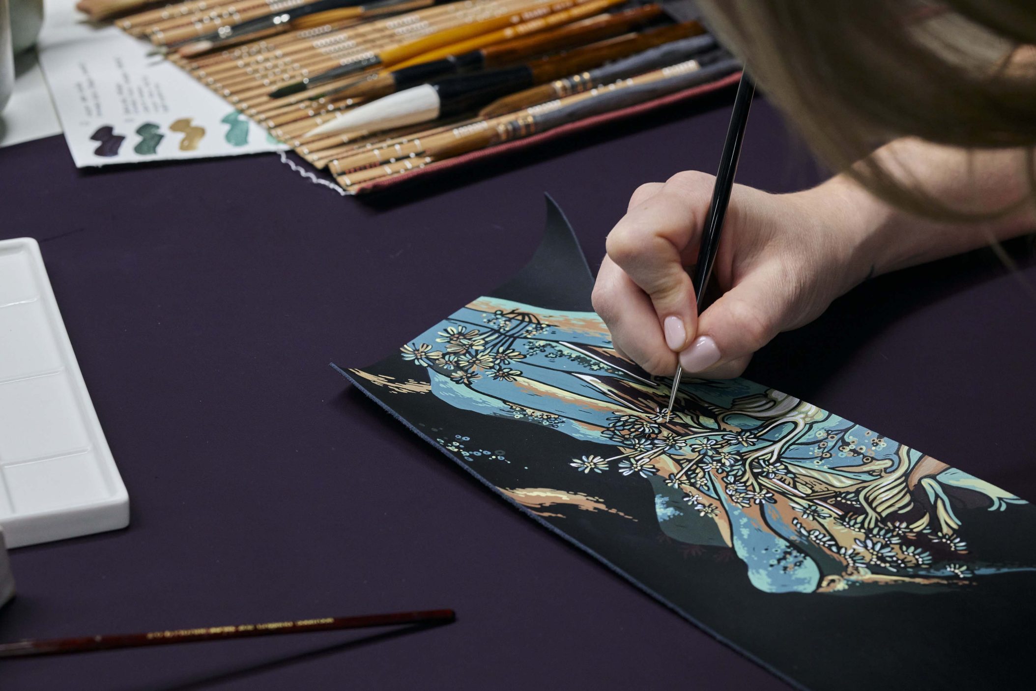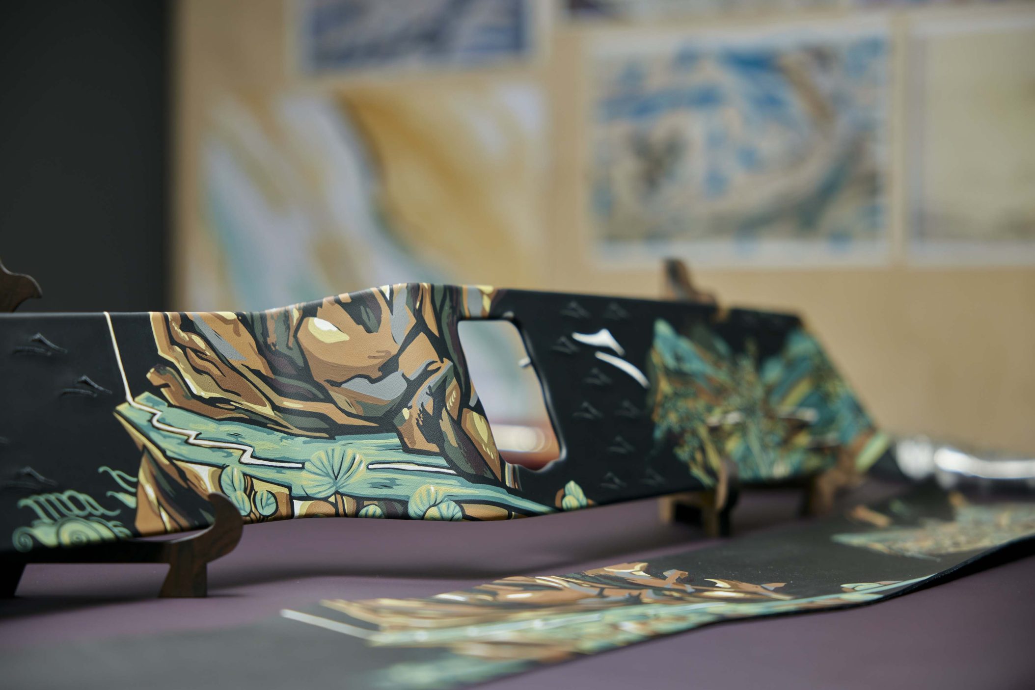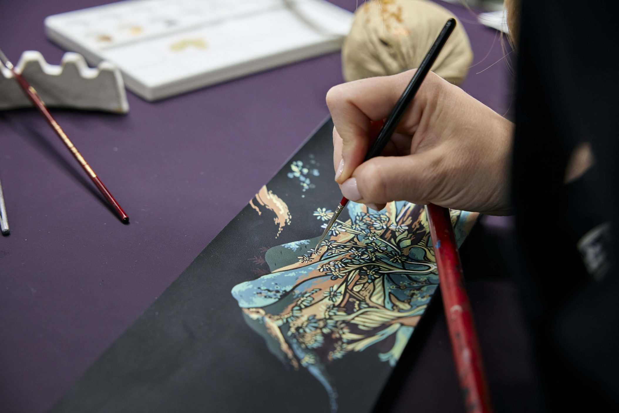 Phantom Extended saab endale käsitsi maalitud galeriipaneeli, mis meenutab lendavaid apsaras’e – budistlikke taevaseid olendeid. Ningye Purple karva kerevärv ja 192 langevat tähte laepaneelil räägivad omaette poeetilist lugu. Disainer Chloe Dowsett tõi motiivile elu andes mängu hiina puugravüüri tehnika, ainult et plokkide asemel kasutas ta peenikest pintsliharja ja maalis kihthaaval mustale nahale. Tulemus: sisekujundus, mis kõlab vaikselt, aga mõjuvalt.