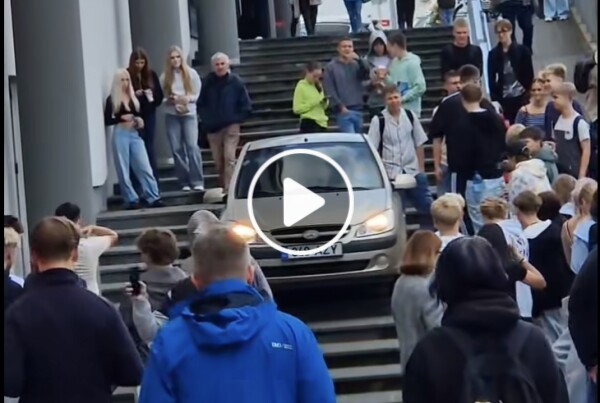 Tallinnas Magistrali keskuse juures sattus tähelepanuväärsesse olukorda vanem meesterahvas, kes oma väikese Hyundaiga otse treppidest alla sõitis. Mis talle seda manöövrit õigeks tegi, jääb ilmselt ainult tema enda teada.