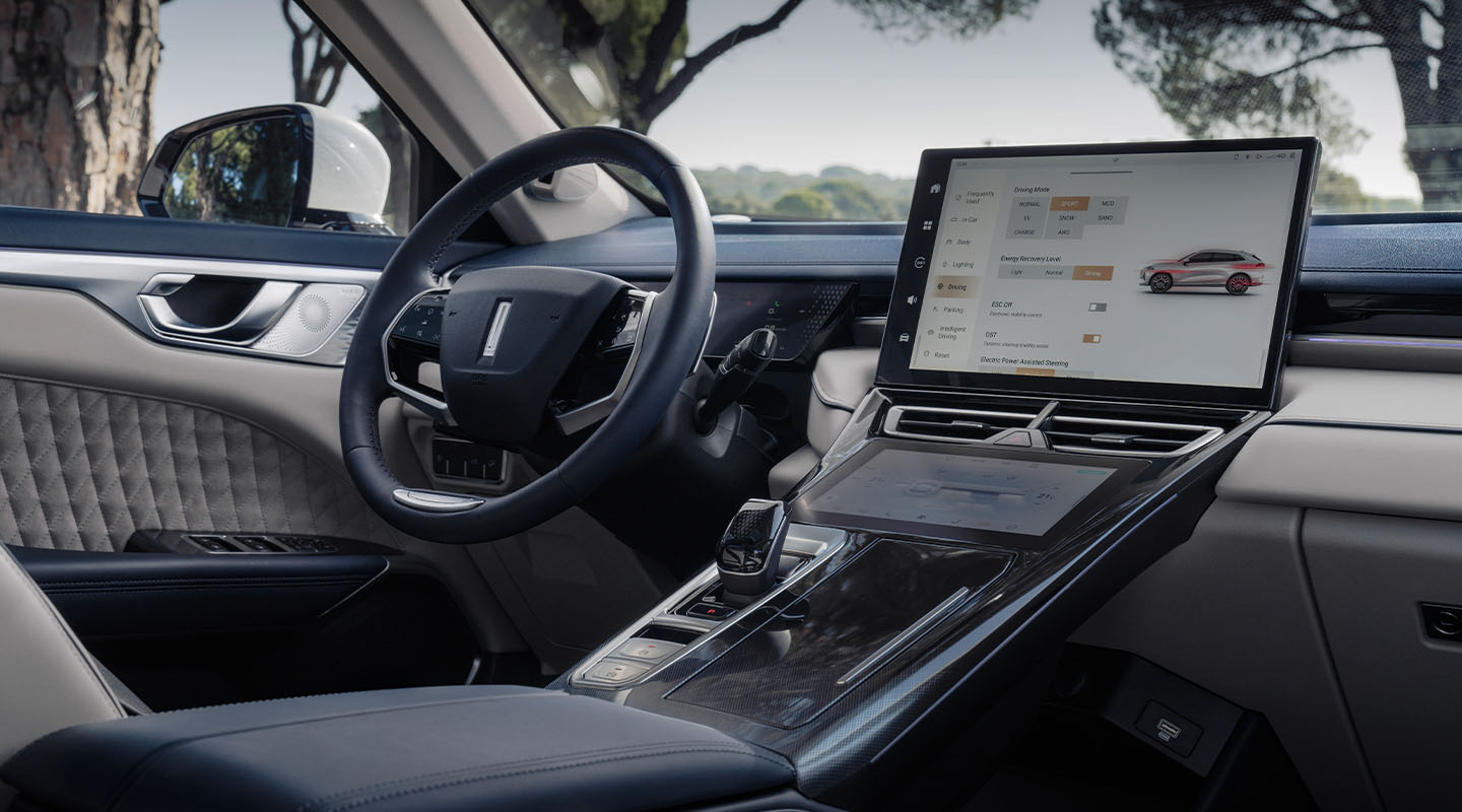 Astud WEY 03 salongi ja… no oota nüüd, mis see on? Kas ma eksisin uksega ja sattusin kogemata Audi Q5 sisse? Unusta kõik need vanad naljad odavast plastist, logisevatest lülititest ja ergonoomikast. WEY 03 sees on kõik päriselt paigas. Hämmastavalt hästi.